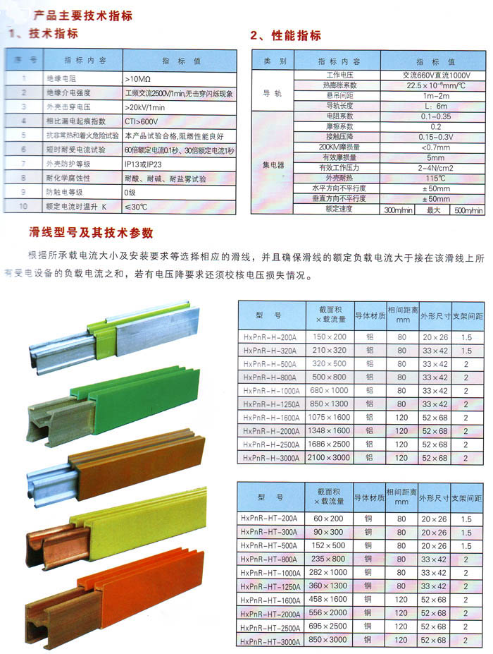 3、HXPnR-H型有铝合金和铜体两种材料的滑线。