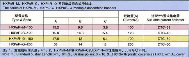 产品介绍:一. 产品说明 HXPnR-M、HXPnR-C、HXPnR-、HXPnR-G系列单极组合式滑触线由M型、C型、型、G型铜导管与相配置的PVC绝缘护套、外置式集电器以及与之相对应的支架、端口、喇叭口、接头滑座等组
