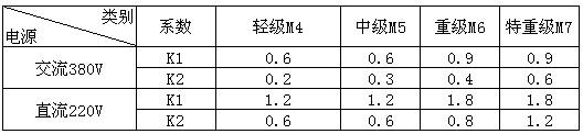 A:其它负载电流 K1、K2:转换系数(电流转换系数如下表)