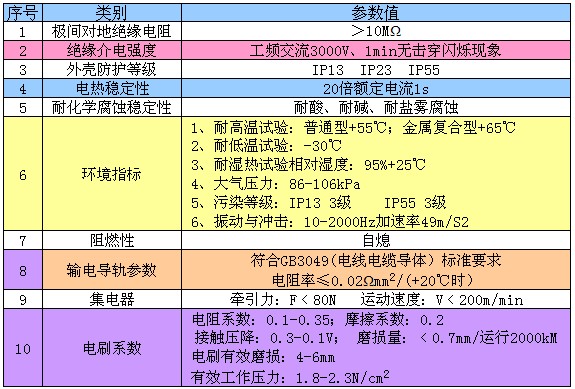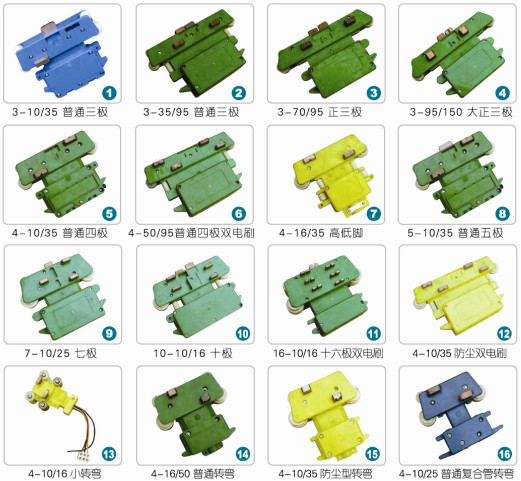 2、输电铜排母线电流密度高、阻抗低、线路损失小。电刷具有良好的柔性和自润滑性,集电器移动灵活、定向性好、接触性好,有效地控制了接触电弧和串弧现象。