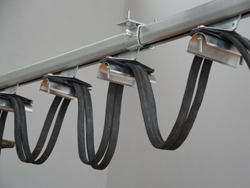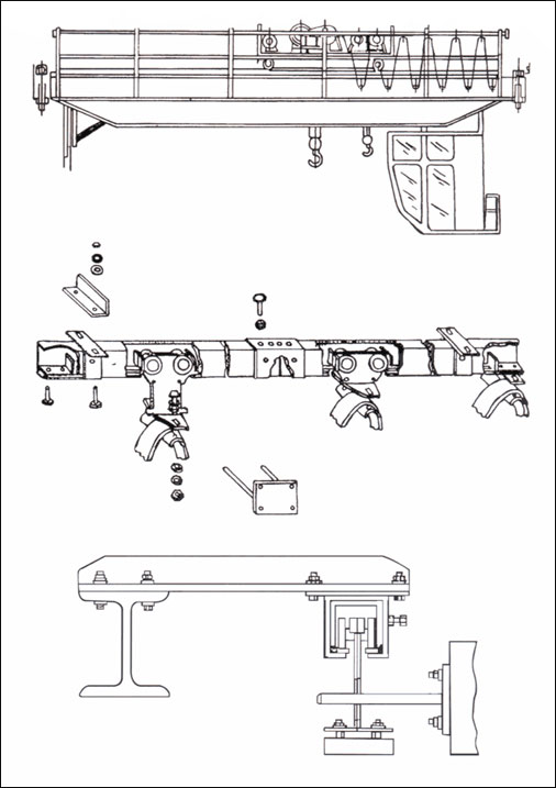 悬吊导轨,螺栓止动,使导轨不能串动,椭圆形安装孔可以较正轨道线性度。